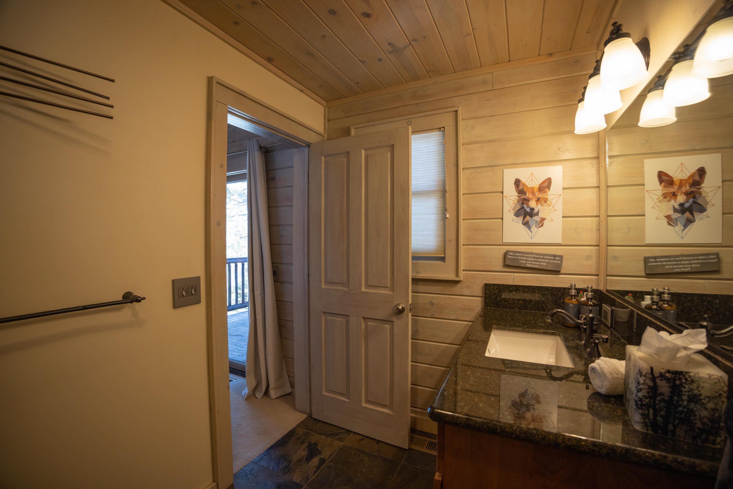 Bear suite: Master bedroom with King Bed, TV with DirectTV and en suite bathroom (sleeps 2)